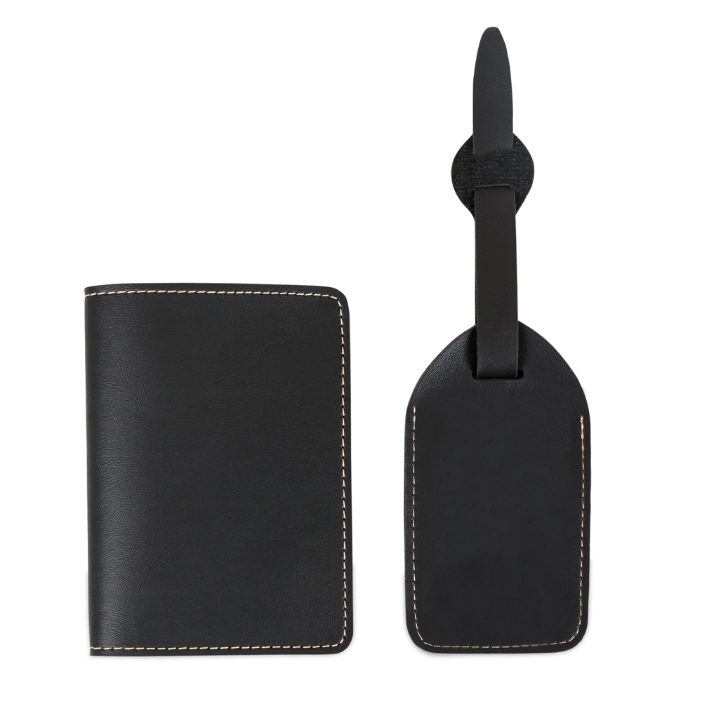 Descrição: Kit viagem 2 peças Bidins em couro sintético. Possui porta passaporte com três divisórias para cartões e identificador de bagagem com fivela ajustável. Medidas aproximadas para gravação (CxL): Identificador de Bagagem 4,8 cm x 7 cm – Porta Documento 12,7 cm x 8,7 cm Tamanho total aproximado (CxL): Identificador de Bagagem 13 cm x 7,2 cm - Porta Documento 14 cm x 9,9 cm Peso aproximado (g): 148