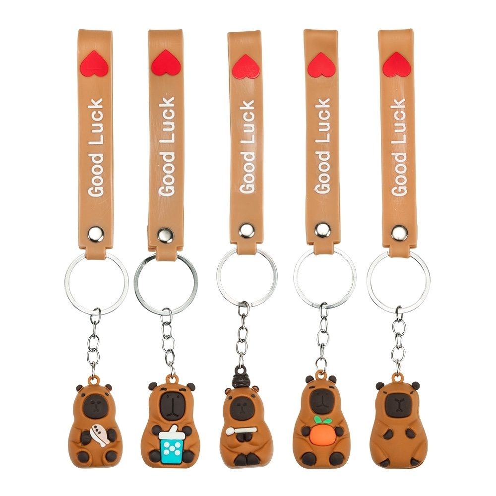 Descrição: Chaveiro com textura emborrachada e em formato de capivara, acompanhado de argola metálica e correia plástica flexível. Altura : 21 cm Largura : 3 cm Espessura : 3 cm Medidas aproximadas para gravação (CxL): 1 cm x 8 cm Peso aproximado (g): 22
